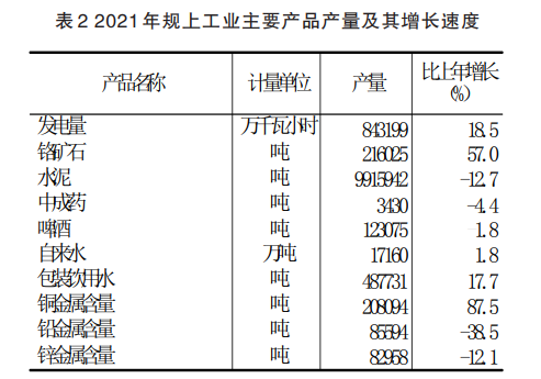 全年規(guī)模以上工業(yè)中,黑色金屬礦采選業(yè)增加值比上年增長57.5%,有色金屬礦采選業(yè)增長36.4%,農(nóng)副食品加工業(yè)增長9.0%,食品制造業(yè)下降39.5%,酒、飲料和精制茶制造業(yè)下降0.1%,醫(yī)藥制造業(yè)增長17.9%,非金屬礦物制品業(yè)下降8.8%,電力、熱力生產(chǎn)和供應(yīng)業(yè)增長4.8%。