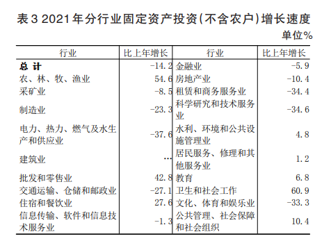 全年固定資產(chǎn)投資總額比上年下降14.2%。按產(chǎn)業(yè)分,第一產(chǎn)業(yè)投資增長56.3%,第二產(chǎn)業(yè)投資下降29.7%,第三產(chǎn)業(yè)投資下降13.1%。按經(jīng)濟(jì)類型分,國有經(jīng)濟(jì)投資下降12.5%,集體經(jīng)濟(jì)投資增長21.0%,個(gè)體經(jīng)濟(jì)投資下降78.2%,其他各種經(jīng)濟(jì)類型投資增長53.6%。全年民間投資增長0.7%。