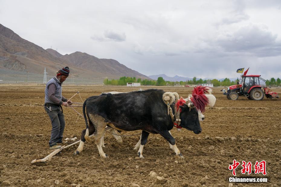 “五一”國際勞動節(jié)期間,平均海拔超過3800米的西藏自治區(qū)日喀則桑珠孜區(qū)田間一派農忙景象,當地農牧民正忙于春耕,播種小麥。據當地農牧民介紹,他們春耕翻耕土地一般使用拖拉機,而播撒小麥后,覆蓋土層則使用高原傳統(tǒng)的“二牛抬杠”,機械化和傳統(tǒng)耕作方式相互配合,共同完成春耕作業(yè)。