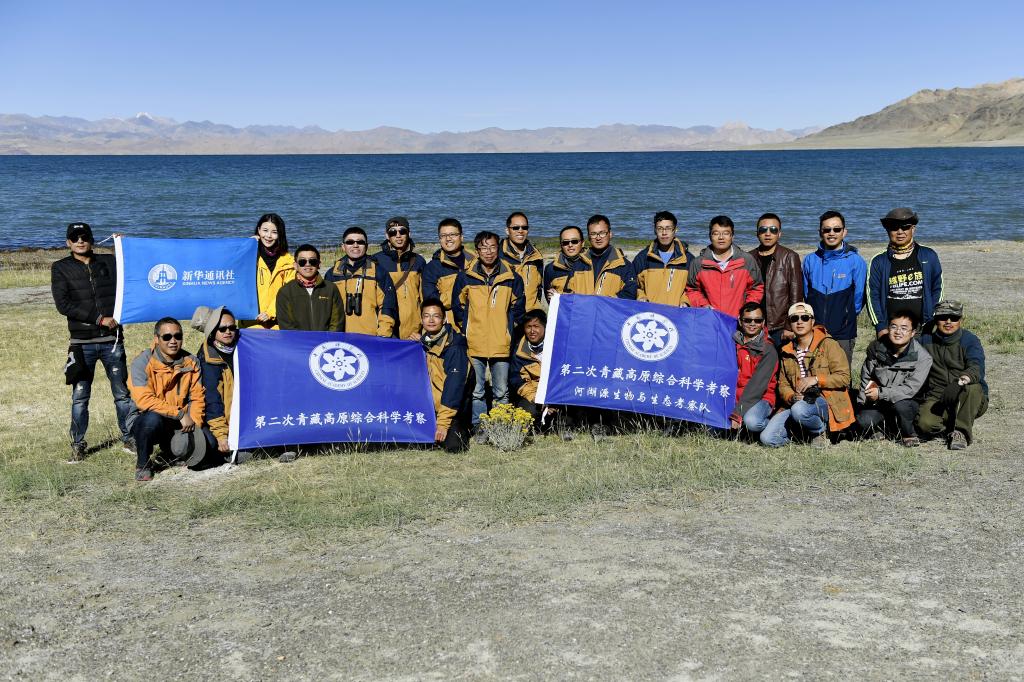 2018年8月,記者在西藏阿里與青藏科考隊員合影。