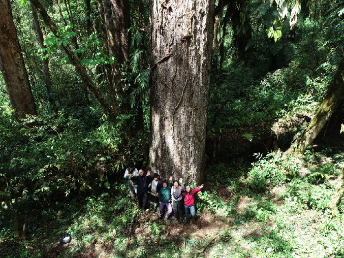 圖為測量團(tuán)隊成員與大樹合照。(受訪者供圖)
