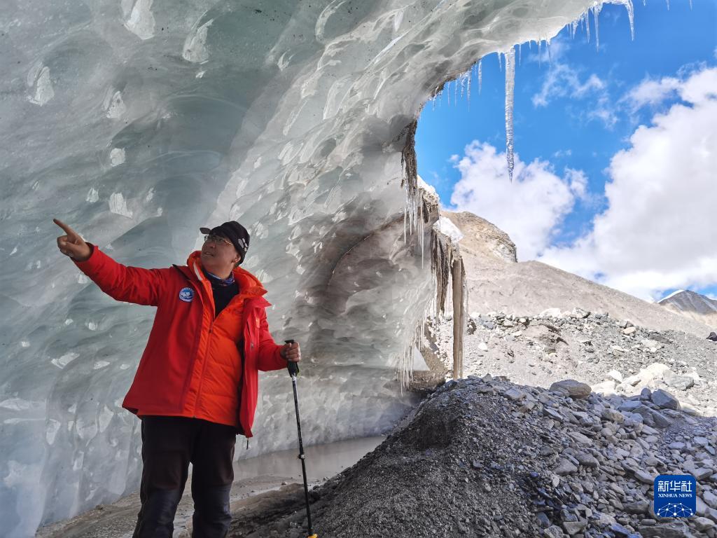 中國(guó)科學(xué)院西北生態(tài)環(huán)境資源研究院副院長(zhǎng)康世昌在珠峰東絨布冰川區(qū)域考察(5月8日攝)。新華社發(fā)