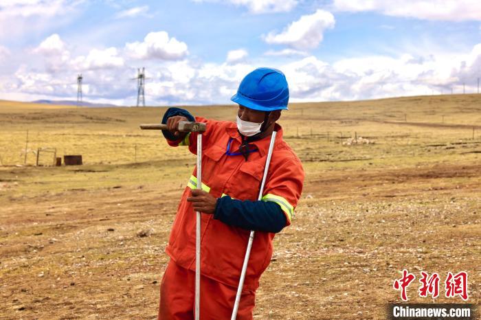 “這里是當(dāng)年建設(shè)青藏聯(lián)網(wǎng)工程時(shí)的凍土施工攻堅(jiān)帶,這樣的地方,也只有靠冬季受凍時(shí)施工。春夏時(shí)節(jié),便成了泥沼地?!?501號(hào)塔位年檢工作現(xiàn)場(chǎng)負(fù)責(zé)人董建明一邊推車,一邊介紹。