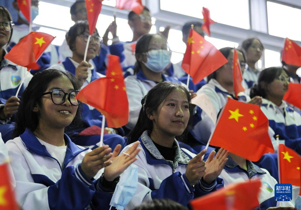 山南市第二高級中學學生在體育館觀看中華詩文朗誦會(6月3日攝)。新華社記者 劉洲鵬 攝