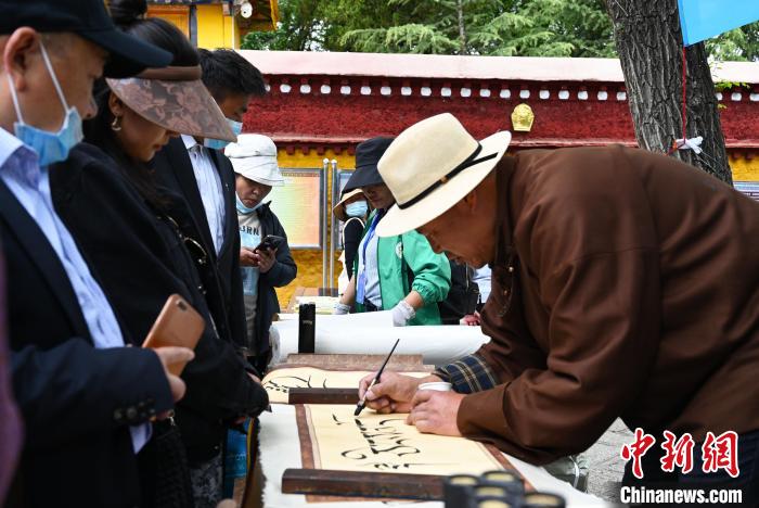 圖為活動(dòng)現(xiàn)場(chǎng),藏文書法展示。 趙朗 攝