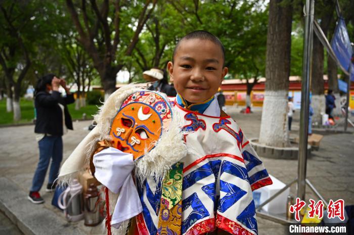 現(xiàn)場(chǎng),藏戲、諧欽、堆諧、鷹笛吹奏等非遺歌舞展示吸引了眾多市民和游客前來觀看?;顒?dòng)中,白瑪多吉是藏戲演出中的小演員。他是城關(guān)區(qū)第二小學(xué)學(xué)生,從一年級(jí)到目前已經(jīng)學(xué)習(xí)了五年藏戲,這是他表演活動(dòng)中規(guī)模最大的一次。他說:“開始是父母讓我去學(xué)習(xí),現(xiàn)在已經(jīng)成為我自己的興趣愛好了,而且這樣的表演能夠讓我更有成就感,也變得更自信了。”