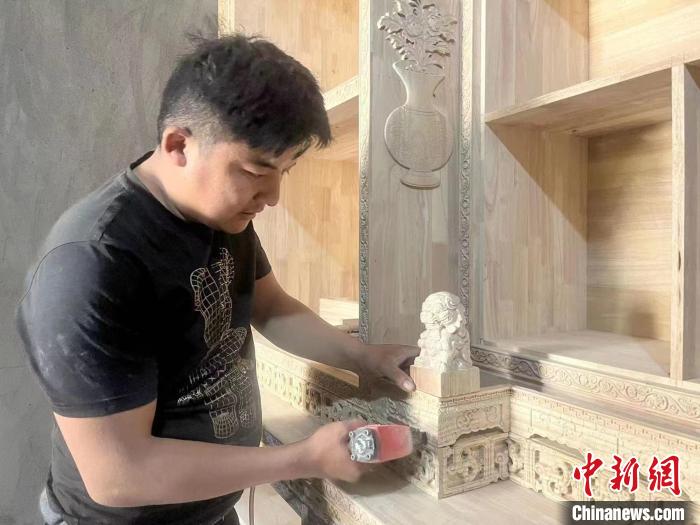 說干就干,2021年他在村里開了木材加工廠,為此,他還特地去外地學(xué)習(xí)操作方法,“藏式家具的雕花很復(fù)雜,但是我有壁畫的繪畫功底,學(xué)習(xí)起來非??臁!?/p>