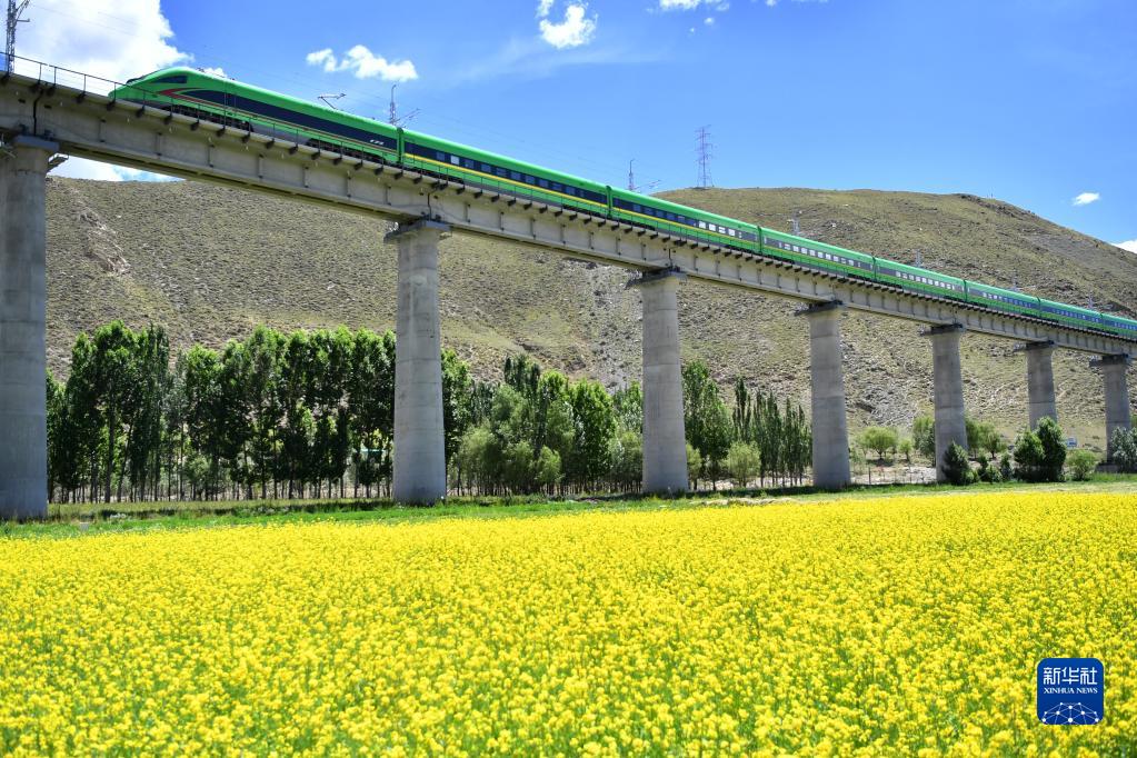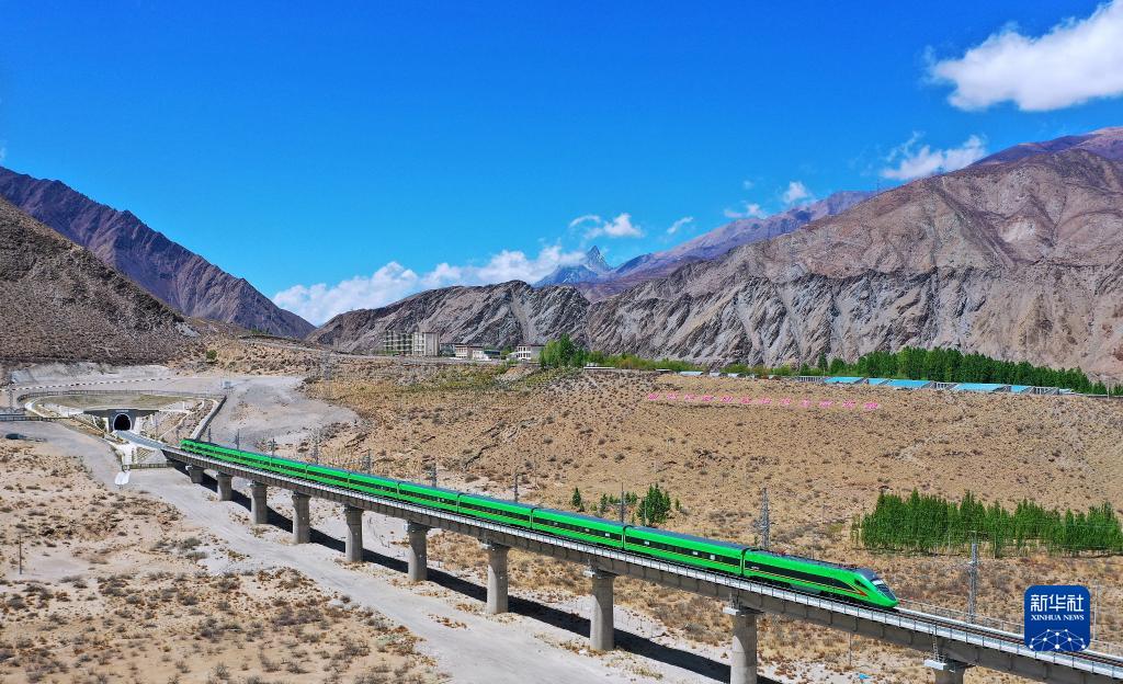 6月22日,復(fù)興號列車行駛在西藏山南境內(nèi)。新華社記者 覺果 攝