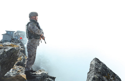 詹娘舍哨所官兵站崗執(zhí)勤。庾永杰攝(人民視覺)
