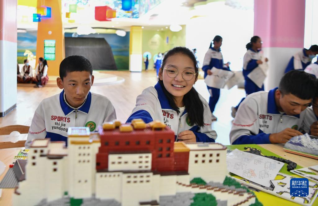 7月8日,學(xué)生代表在兒童體驗館參與互動體驗項目。新華社記者 晉美多吉 攝