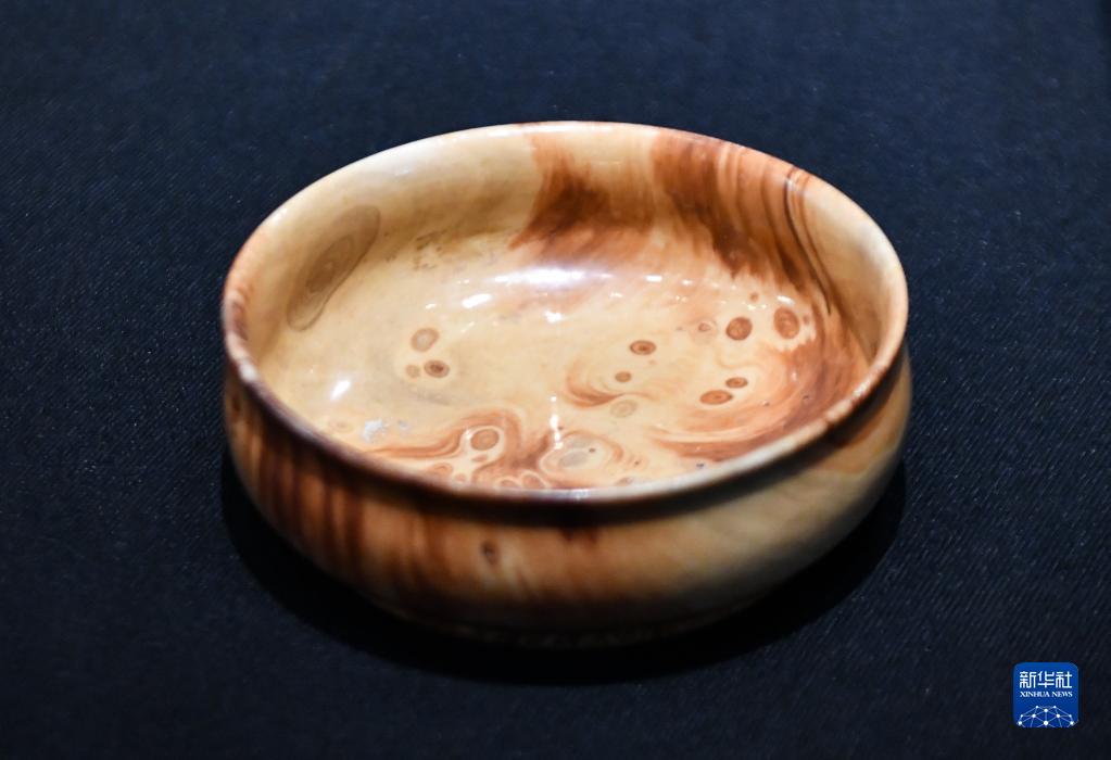 這是7月8日拍攝的西藏博物館新館展品——清乾隆時期的仿木紋釉碗。新華社記者 晉美多吉 攝