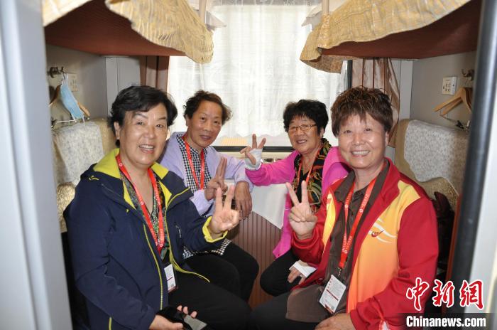 圖為乘坐首趟暑期進(jìn)藏旅游專列的旅客在車廂內(nèi)合影。才仁加 攝