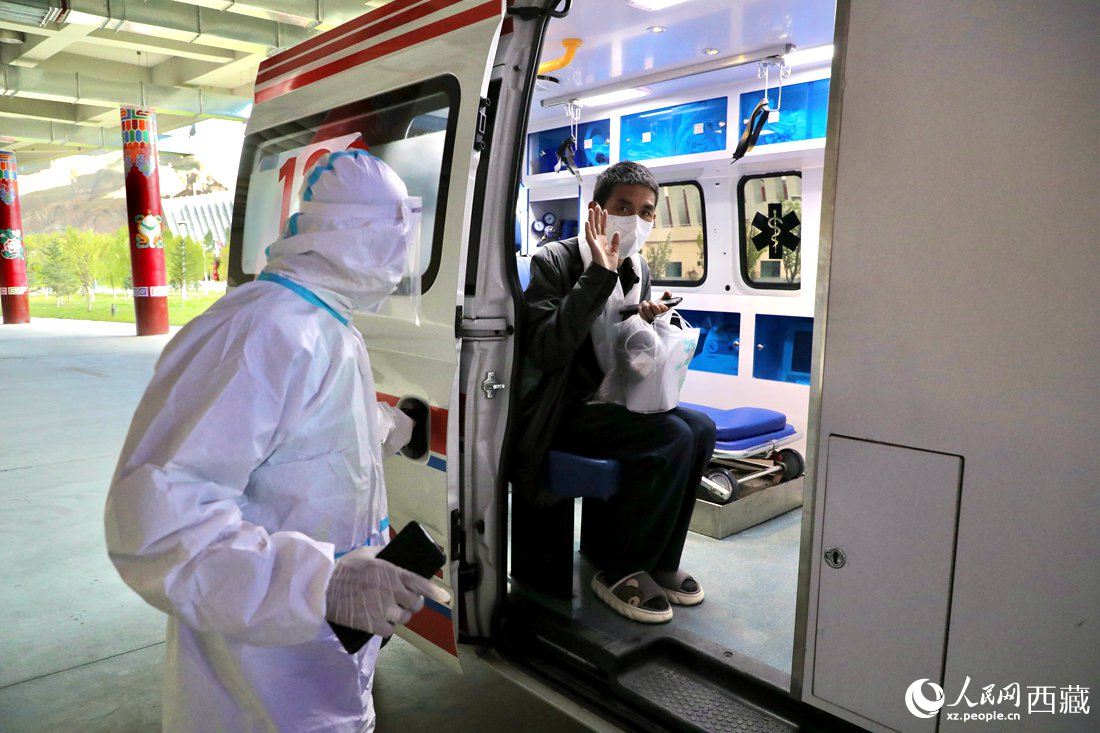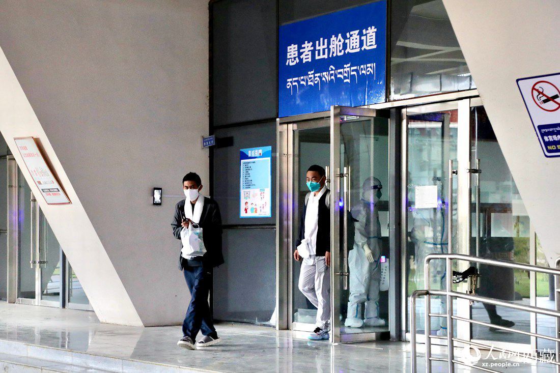 拉薩首批無癥狀感染者轉(zhuǎn)陰出艙。人民網(wǎng) 次仁羅布 攝