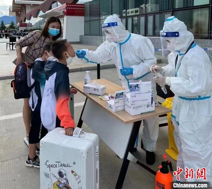 圖為西藏林芝米林機場游客現(xiàn)場接受抗原檢測。米林機場供圖