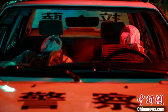 每晚他們要檢查一百多輛往來(lái)的車(chē),沒(méi)有車(chē)的時(shí)候他們就在路口反復(fù)踱步,偶爾打開(kāi)面罩呼吸下略帶清涼的空氣,讓自己清醒一些。