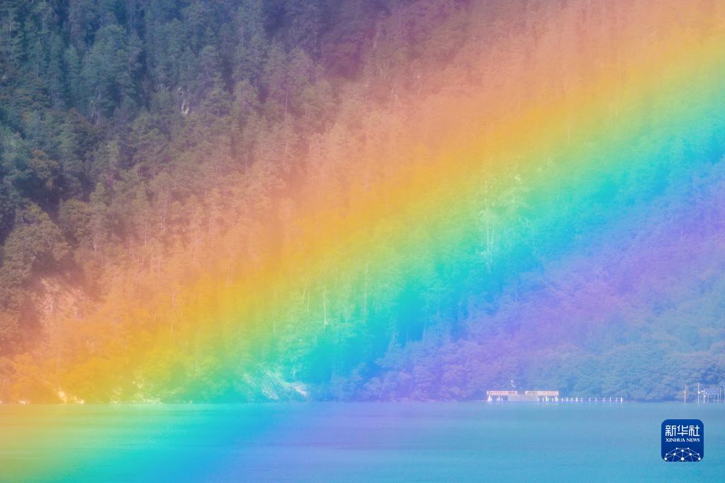 這是8月29日在巴松湖拍攝到的彩虹。新華社記者 姜帆 攝