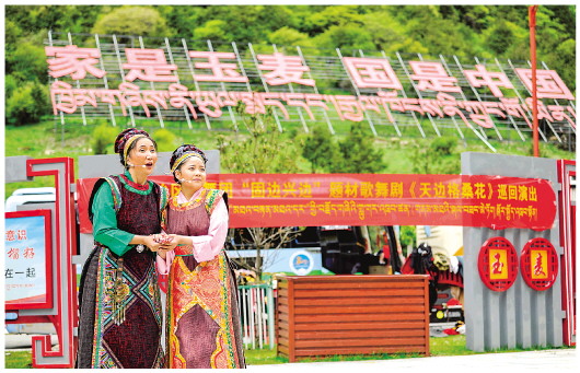 文藝是時(shí)代前進(jìn)的號(hào)角,最能代表一個(gè)時(shí)代的風(fēng)貌,最能引領(lǐng)一個(gè)時(shí)代的風(fēng)氣?!短爝吀裆;ā穼?dǎo)演加永江措說(shuō),《天邊格?;ā愤@部歌舞劇就是要把“三人鄉(xiāng)”守邊的故事搬上舞臺(tái),讓它傳遍大江南北,激勵(lì)更多人加入愛(ài)國(guó)守邊的行列。