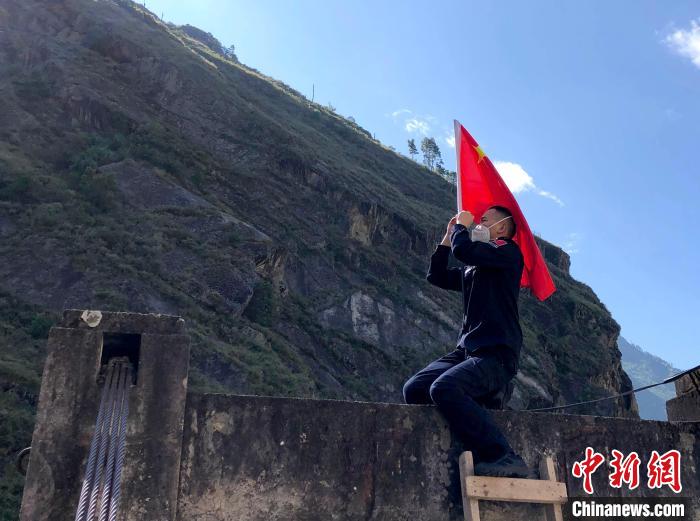 巡邏間隙,移民管理警察攻國杰在口岸遺址上方更換國旗?!」陆y(tǒng) 攝