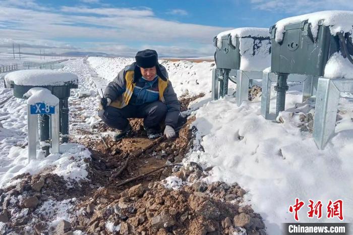 在唐古拉山地區(qū),空氣中的含氧量不足平原地區(qū)的50%,一個看似簡單而又行云流水的檢查作業(yè),一套下來,工作人員們氣喘吁吁?!敖裉焯乒爬奶鞖膺€不錯,風(fēng)也不大。”帽檐上、眉毛上結(jié)滿了霜花的梁海峰一邊檢查一邊說。