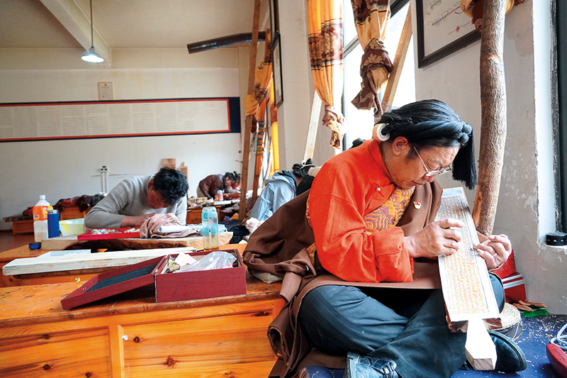 江達(dá)縣的波羅古澤木刻雕版技藝,2008年被列入第一批國(guó)家級(jí)非物質(zhì)文化遺產(chǎn)擴(kuò)展名錄。該技藝以當(dāng)?shù)厥a(chǎn)的樺膠樹(shù)為原料,制作出的工藝品做工精細(xì)。一塊雕版制作完成需經(jīng)10多道工序,使用的刻板雕刻工具有40余種。