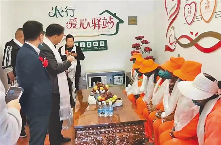 農(nóng)行日喀則分行在臨街網(wǎng)點(diǎn)設(shè)立“農(nóng)情暖域——愛心驛站”,為戶外勞動者提供便民服務(wù)。