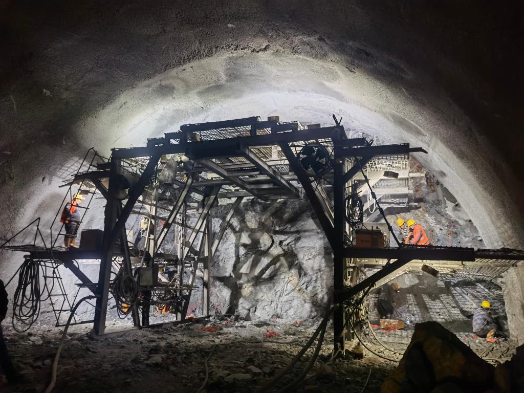 工人在拉薩至日喀則高速公路冬才隧道進行施工作業(yè)。(受訪單位供圖)