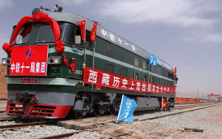 2004年3月23日,在海拔4704米的青藏鐵路海拔最高鋪架基地——西藏安多鋪架基地上,中鐵十一局1083號東風(fēng)4型內(nèi)燃機車向雪域高原緩緩駛來。這標志著西藏歷史上出現(xiàn)了第一臺鐵路機車。