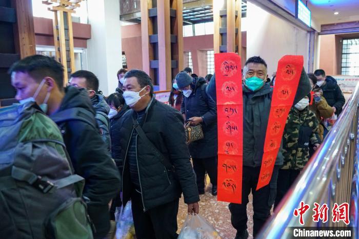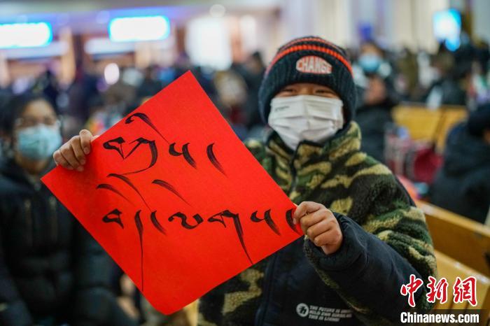 在候車廳,旦增旺久一家獲贈(zèng)了藏語春聯(lián),他介紹,自己是拉薩堆龍德慶區(qū)人,此次是乘火車前往上海觀光旅游?!懊磕甓煳覀兌紩?huì)去其他省區(qū)旅游,云南、四川,還有江西這些我們都去過了,今年先去上海,再去廣東,計(jì)劃趕在藏歷新年前回到拉薩過年。”