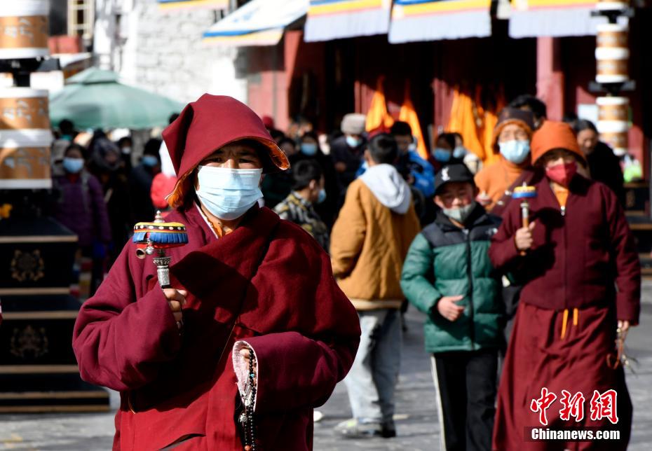 1月12日,西藏拉薩,僧侶圍繞八廓街轉經(jīng)。 李林 攝