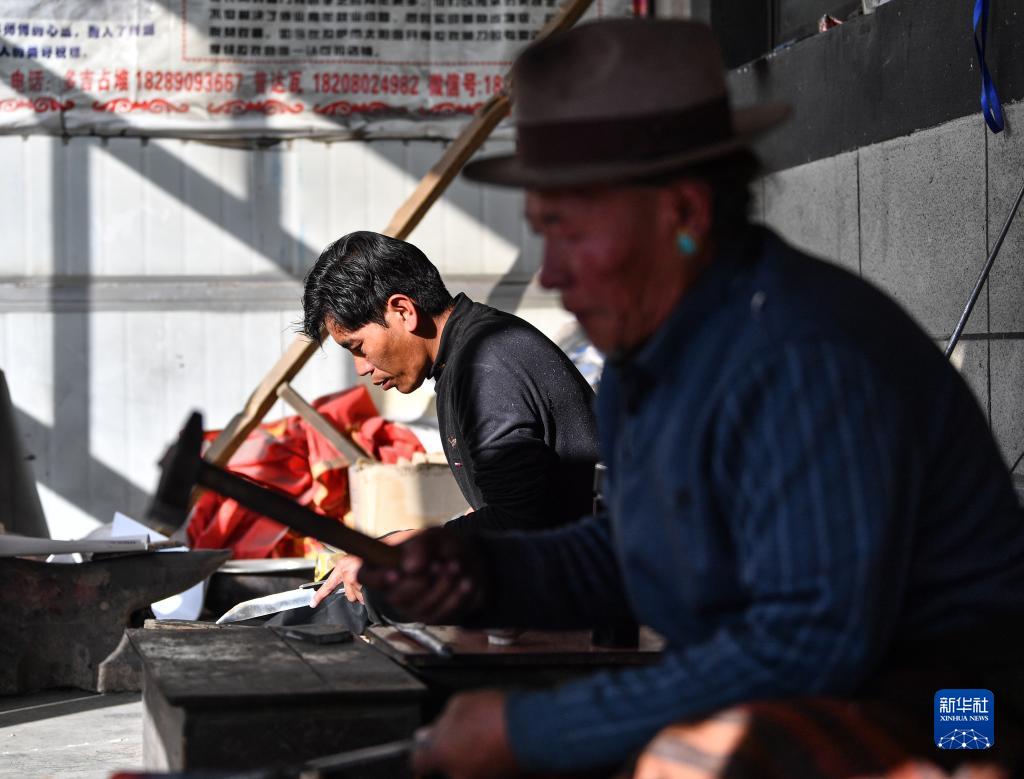 普達瓦在制作拉孜藏刀(1月19日攝)。新華社記者 晉美多吉 攝