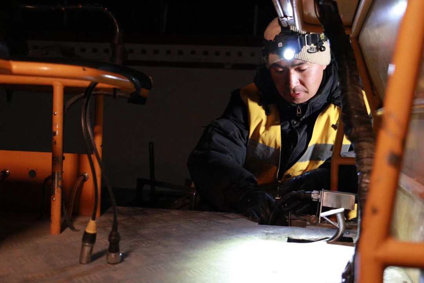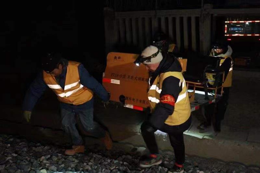 “大家?guī)Ш霉ぞ卟牧?,準備出發(fā)。”22時整,隨著作業(yè)負責人探傷工區(qū)工長羅布一聲令下,呼嘯的寒風(fēng)中,黃色的“迷你敞篷車”緩緩啟動,載著4名職工,開始了當晚對拉林鐵路20多公里線路的探傷檢查任務(wù)。