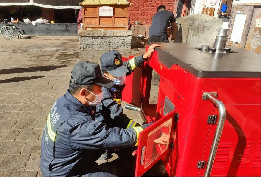 圖為檢查消防設備。圖片由布達拉宮消防救援大隊提供