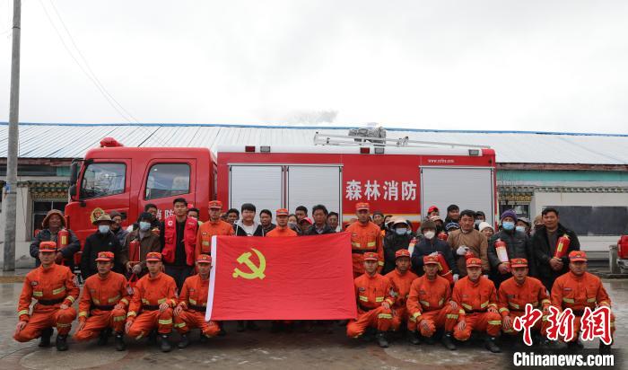 林芝市森林消防支隊巴宜區(qū)中隊消防救援人員與地方民眾合影留念。西繞拉翁 攝