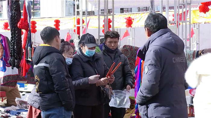 走進(jìn)年貨街,記者看到大街小巷置辦年貨的人群紛至沓來(lái),市場(chǎng)上酥油、卡賽、人參果、五彩青稞穗、切瑪盒、花束等藏歷新年傳統(tǒng)年貨應(yīng)有盡有,特色產(chǎn)品豐富充裕。人們盡情挑選年貨,大包小包滿(mǎn)載而歸。