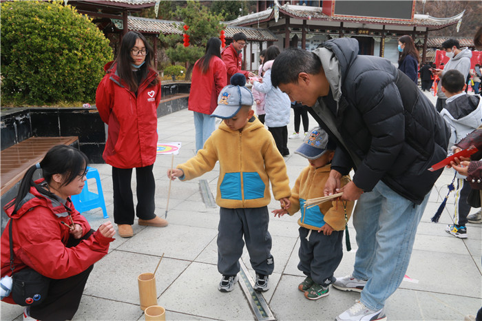 藏歷新年游園活動由趣味游戲、燈謎競猜、我與2023同框、新年微心愿、樂頌祖國等部分組成。趣味游戲環(huán)節(jié),設置了8個游戲點,每個點位的參與人員自覺排起長隊,游戲項目均老少皆宜,不同民族的市民扶老攜幼“全家總動員”,團結合作,樂在其中,拉近了親朋之間的距離。燈謎競猜環(huán)節(jié),結合黨史、新中國史和百姓生活,懸掛800個謎面,現(xiàn)場市民們興致昂揚,發(fā)揮自己的聰明才智揭下謎底,兌換獎品?!拔遗c2023同框”合影活動中,大家臉上洋溢著幸福的笑容,站在新時代、謀求新作為。“新年微心愿”許愿活動現(xiàn)場始終洋溢著幸福、快樂、愉悅的氣息,大家紛紛書寫下自己的愿望,表達自己的理想追求和奮斗目標。