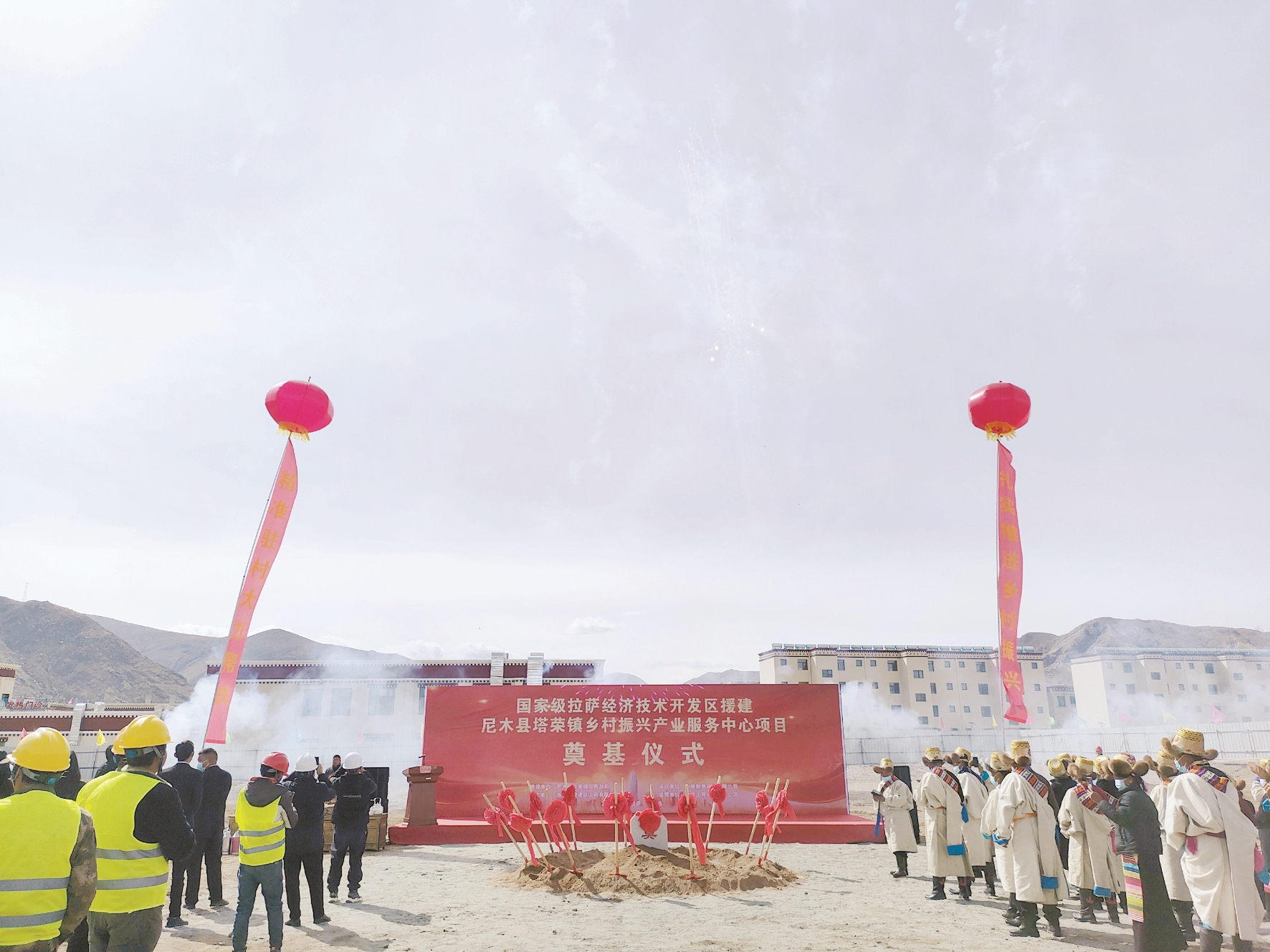 3月20日,拉薩經(jīng)開區(qū)援建尼木縣塔榮鎮(zhèn)產(chǎn)業(yè)服務中心項目奠基儀式舉行。圖為奠基儀式現(xiàn)場。 拉薩融媒記者 李從芳攝