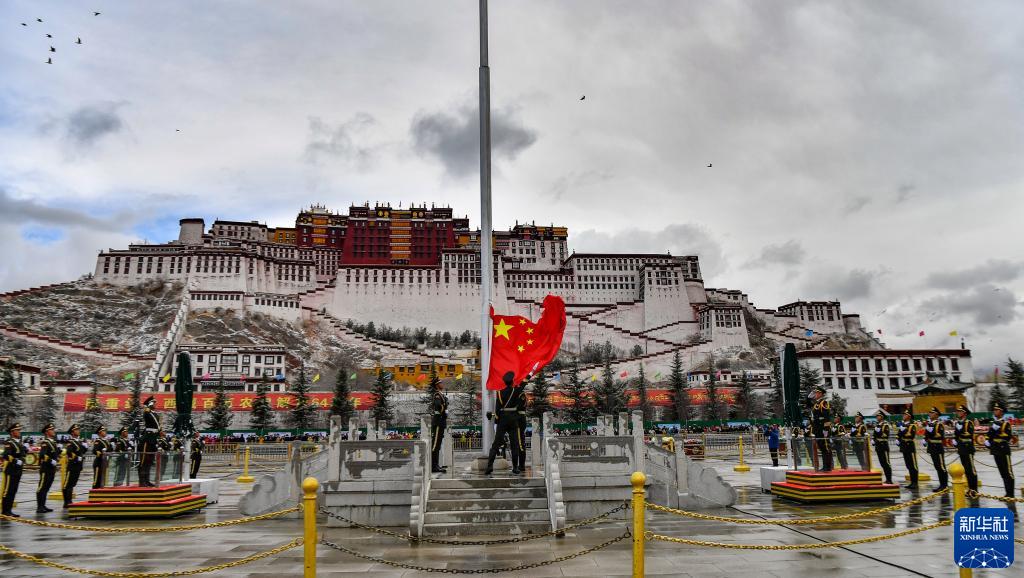 3月28日,拉薩布達拉宮廣場舉行升旗儀式。新華社記者 晉美多吉 攝
