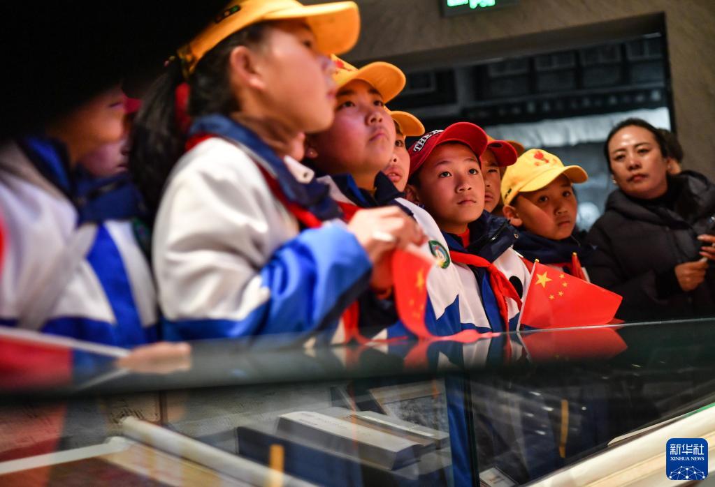 3月28日,拉薩市堆龍德慶區(qū)乃瓊小學學生參觀西藏百萬農(nóng)奴解放紀念館。新華社記者 晉美多吉 攝
