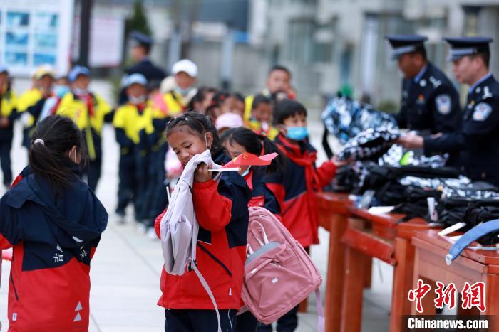 移民管理警察為學(xué)生發(fā)放書包,鼓勵學(xué)生好好學(xué)習(xí),將來成為棟梁之材。 肖富貴 攝