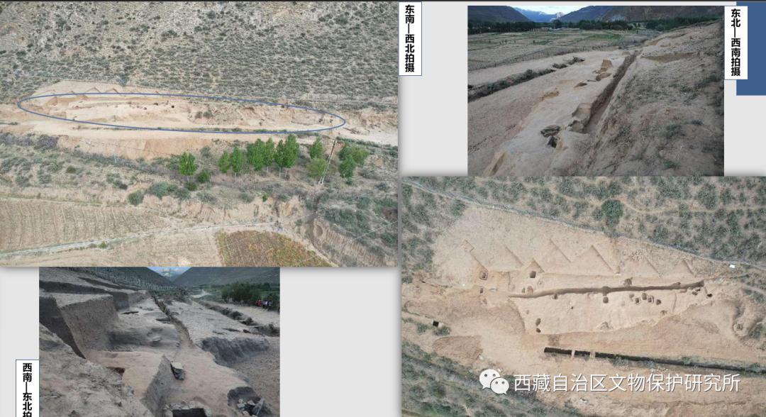 結(jié)桑墓地位于西藏自治區(qū)山南市乃東區(qū)結(jié)巴鄉(xiāng)格桑村一組西北方的象山東麓山腳處。該墓地由西藏自治區(qū)文物普查隊(duì)于1984年發(fā)現(xiàn),當(dāng)時(shí)清理了3座墓葬。經(jīng)國家文物局批準(zhǔn),2022年7月至8月,西藏自治區(qū)文物保護(hù)研究所與四川大學(xué)考古文博學(xué)院等單位組成聯(lián)合考古隊(duì)對該墓地進(jìn)行了考古發(fā)掘,發(fā)掘面積300平方米,清理墓葬40座。這批墓葬類型多樣,以土坑石室墓為主,另有洞室墓、石板墓和土坑墓。墓地內(nèi)的墓葬方向基本一致,存在小聚集的特征,表明該墓地應(yīng)有一定規(guī)劃,并且已經(jīng)形成了相應(yīng)的喪葬傳統(tǒng)。隨葬品較少,主要出土于洞室墓,包括陶器、石器、鐵器、銅器和料珠等;其中陶器最多,形制特別,具有鮮明的區(qū)域特色。這批墓葬的葬式亦比較一致,主要為屈肢葬。根據(jù)測年數(shù)據(jù),結(jié)合地層關(guān)系、墓葬形制和隨葬品等信息,可初步將墓地年代分為三期:第一期為公元前13世紀(jì)末—公元前10世紀(jì)后期;第二期為公元前4世紀(jì)—公元前1世紀(jì);第三期為吐蕃時(shí)期(公元7世紀(jì)左右)。結(jié)桑墓地是西藏腹心地區(qū)近年來經(jīng)科學(xué)系統(tǒng)發(fā)掘的一處重要的史前墓地,其發(fā)現(xiàn)表明早在商周時(shí)期西藏中部地區(qū)應(yīng)該已經(jīng)形成一個(gè)相對穩(wěn)定的文化區(qū),這對構(gòu)建西藏中部的考古學(xué)年代框架和文化序列,探索吐蕃文明起源等歷史問題具有重要的價(jià)值。