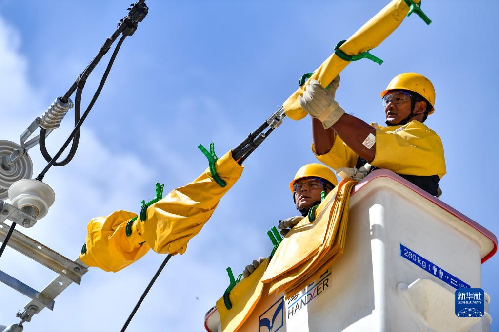 4月26日,扎西尼瑪(左)在進行絕緣電阻檢測。新華社記者 劉洲鵬 攝