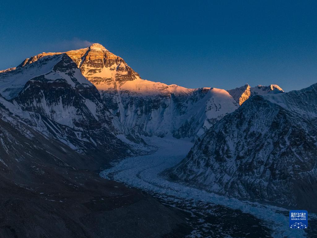這是5月16日日落時(shí)分拍攝的珠穆朗瑪峰(無人機(jī)照片)。新華社記者 晉美多吉 攝