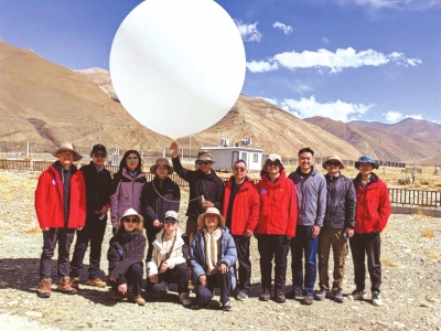 從4月1日接到珠峰科考任務(wù),5月初奔赴珠峰地區(qū),在珠峰科考的半個(gè)月,由成都信息工程大學(xué)李茂善教授帶領(lǐng)的來(lái)自四川的大氣小分隊(duì)成員,在海拔5200米的珠峰北坡科考營(yíng)、海拔4276米的中國(guó)科學(xué)院珠穆朗瑪峰大氣與環(huán)境綜合觀測(cè)研究站(以下簡(jiǎn)稱“珠峰站”)、海拔3800米的喜馬拉雅中段河谷穿梭考察,渴望通過(guò)氣象探測(cè)手段探得高原水汽輸送的路徑。