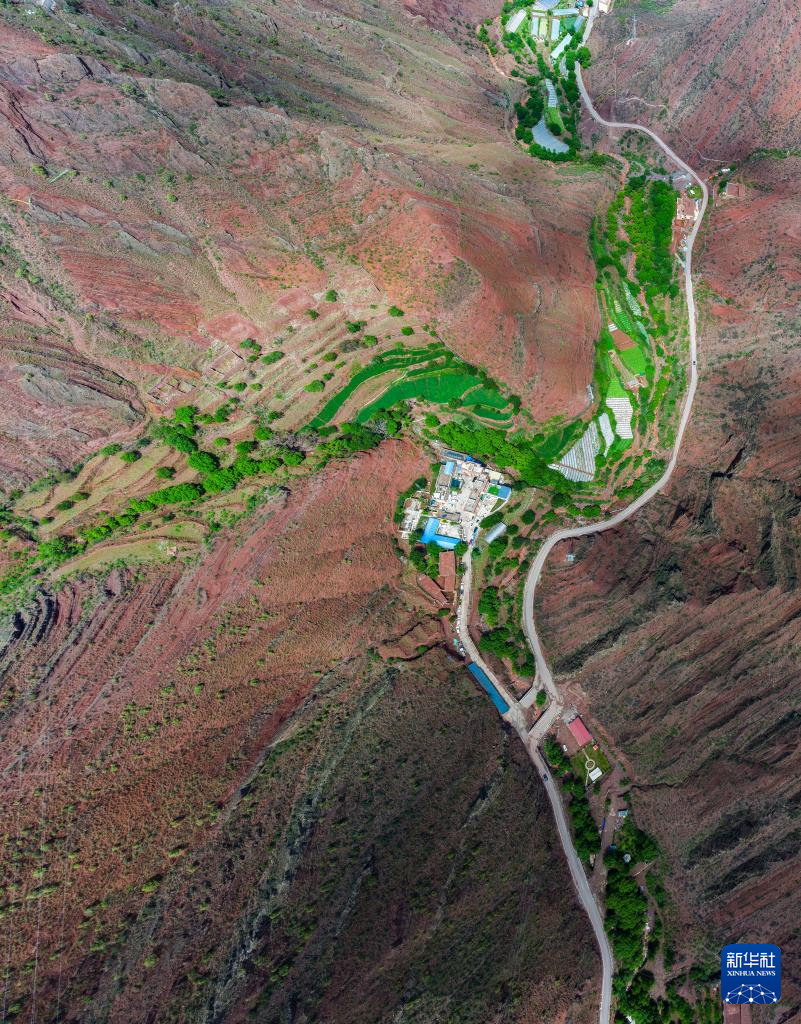 6月21日在國道317線昌都段拍攝的紅土峽谷地貌(無人機照片)。新華社記者 姜帆 攝