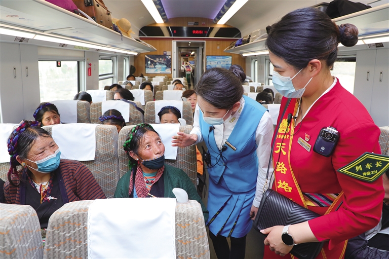 2022年初,青藏集團有限公司在管內各站、車開展“天路格桑花”品牌創(chuàng)建以來,拉林鐵路各車站、各次列車上都能看到“天路格?;ā狈贞爢T,他們用真誠、熱情、熱心為每一位旅客提供溫馨細致的服務。“6月初,我?guī)е⒆觼砦鞑芈糜危?月20日前往林芝,游玩了三天,由于家里有事,不得不趕回去,就買了今天中午回拉薩的火車票,剛開車不久我姑娘就發(fā)燒,肚子痛。列車員看見孩子難受就詢問情況,并找來列車長周晶,通過廣播為我們找醫(yī)生,還好沒啥大事,就是腸胃感冒,我也就放心了。周晶車長也一直在旁邊幫我照顧孩子,拿濕毛巾擦臉,蓋毛毯,送來熱水,太細心了,讓我很感動。她們工作認真負責,服務周到,我一路上都親身感受到了高原動車的熱情?!痹?4日林芝到拉薩的C926次列車上,來自四川的高雅女士拉著記者激動地說。