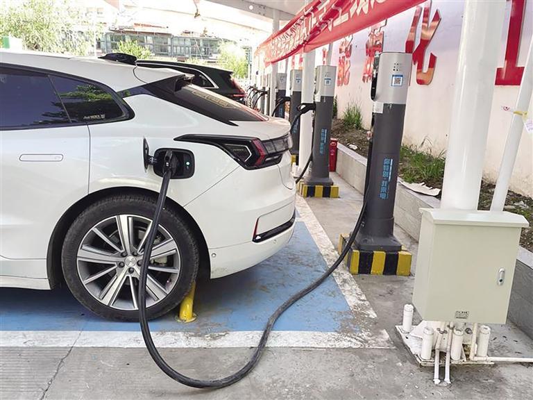 6月27日,記者來(lái)到該綜合服務(wù)站看到,8座新建充電樁一字排開(kāi),幾輛新能源汽車(chē)正在充電,車(chē)主在一旁等候。隨著市區(qū)充電樁的增加,也在一定程度上緩解了交通壓力和時(shí)間成本。
