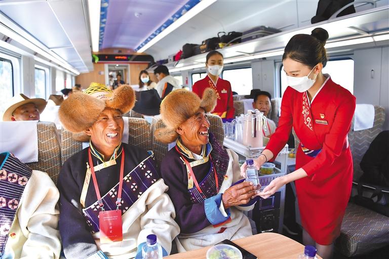 “這兩年,我們與自治區(qū)政府部門及區(qū)教育廳建立聯(lián)動(dòng)機(jī)制,動(dòng)態(tài)掌握當(dāng)?shù)厝罕姵鲂行枨蠛蛯W(xué)生放假安排,爭取運(yùn)力政策,有針對(duì)性地制定運(yùn)輸方案,先后增開多趟林芝—日喀則、林芝—拉薩方向的學(xué)生專列、旅游專列、務(wù)工專列?!崩骤F路林芝站站長朱連祥介紹,靈活多樣的出行專列,不僅便利了各地群眾,對(duì)于促進(jìn)藏東南地區(qū)間的經(jīng)濟(jì)發(fā)展、文化交流也具有重大意義,廣大民眾共享著鐵路事業(yè)發(fā)展的成果。
