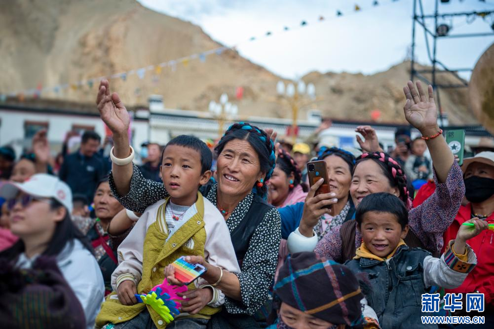 7月23日,在西藏定日2023珠峰音樂美食節(jié)現(xiàn)場,民間藝術(shù)團表演國家級非物質(zhì)文化遺產(chǎn)定日洛諧。新華網(wǎng)發(fā) 李騰 攝