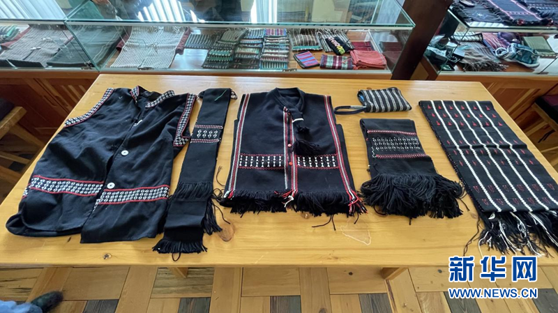 圖為工坊內(nèi)已經(jīng)制作好的成品珞巴族傳統(tǒng)服飾。新華網(wǎng) 陳穎 攝