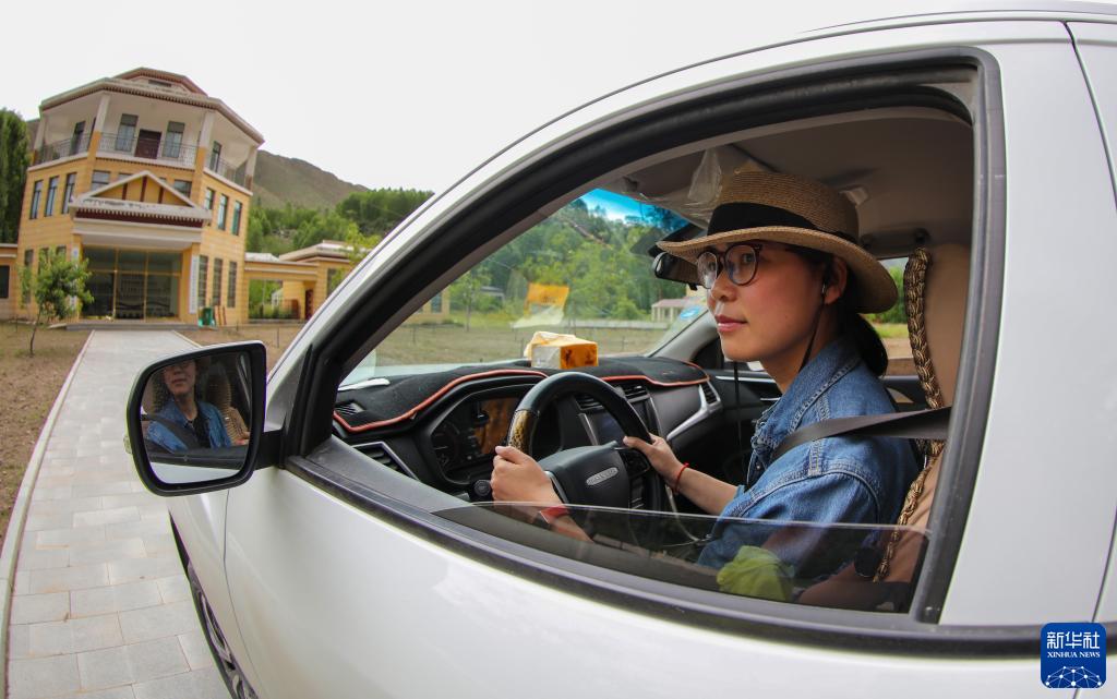 劉利平博士在高原核桃研究所駕駛車輛運輸物資(7月27日攝)。新華社記者 姜帆 攝